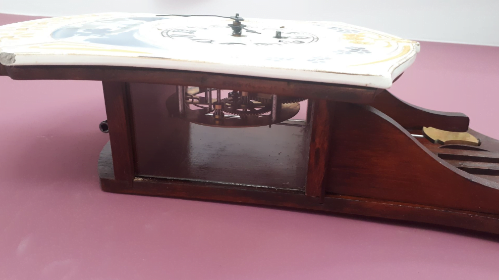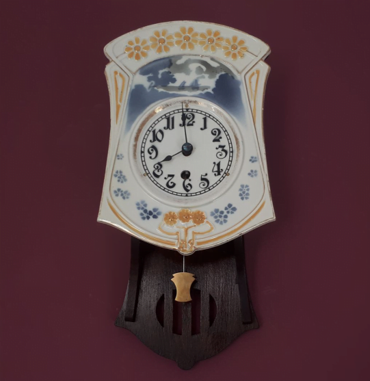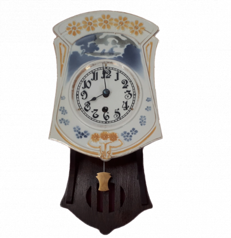 Very old country house kitchen porcelain wall clock. Clockwork system is restored, coming with key and in nice working condition.