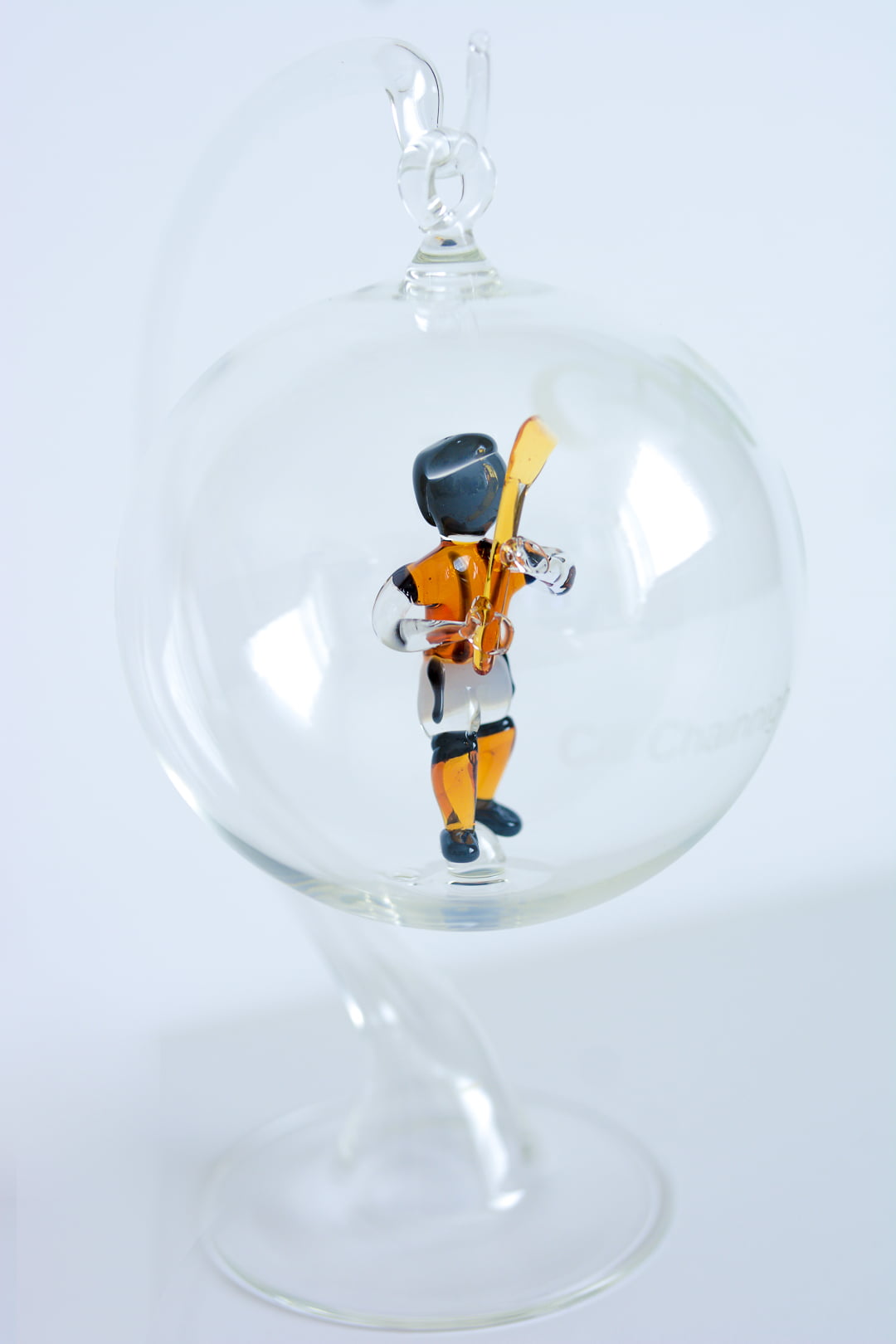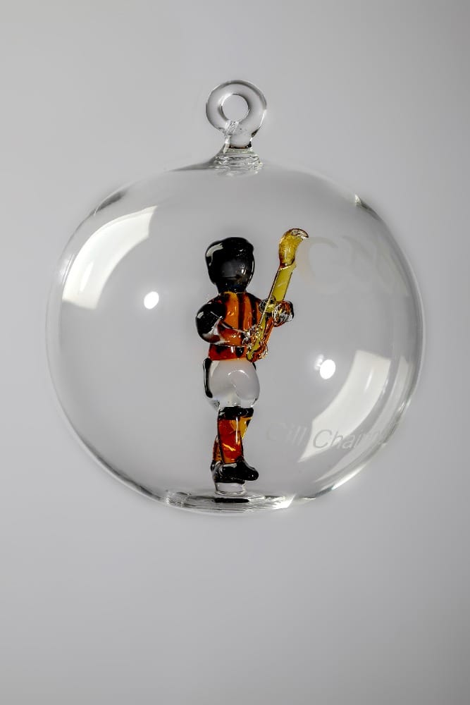 This decoration of GAA Kilkenny hurling player has a charm. It is a real art glass piece. Bauble is engraved with Kilkenny and GAA sign. Diameter of the bauble 8cm.