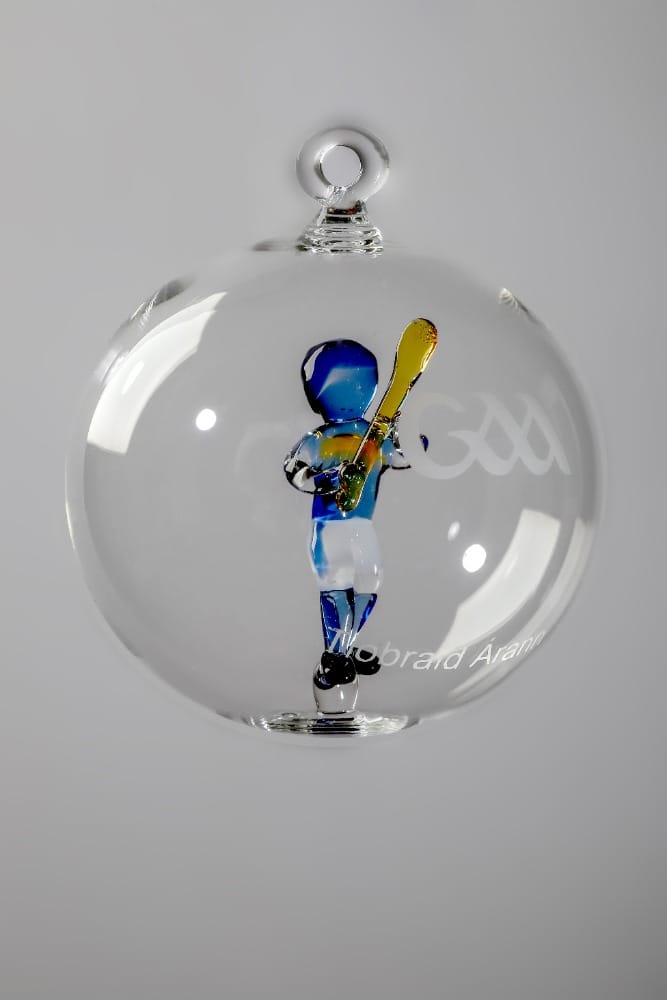 This is real art piece made by our glass artist, Bauble with GAA Tipperary hurling player, stunning piece which will make proud every Tipperary supporter. very limited edition of 15 pieces were made.